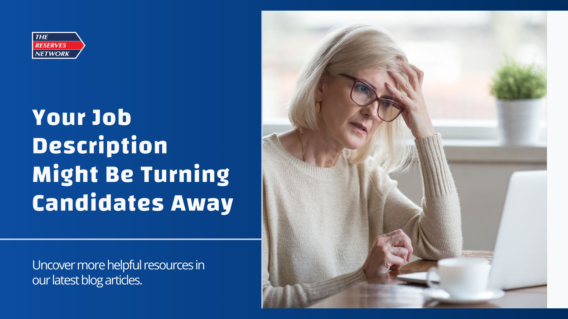 If your job postings aren’t getting the response you need, it may be time for a refresh. Contact The Reserves Network today to learn how we can help you optimize your job descriptions to attract top talent, reduce application abandonment, and fill positions faster.